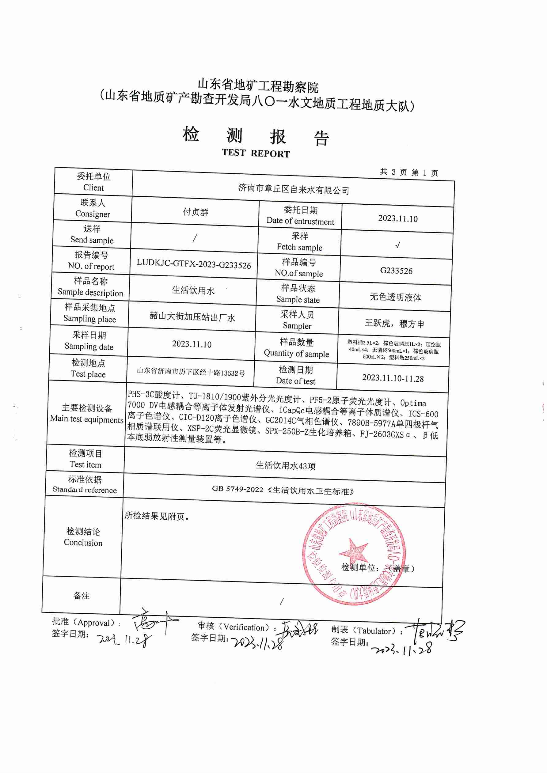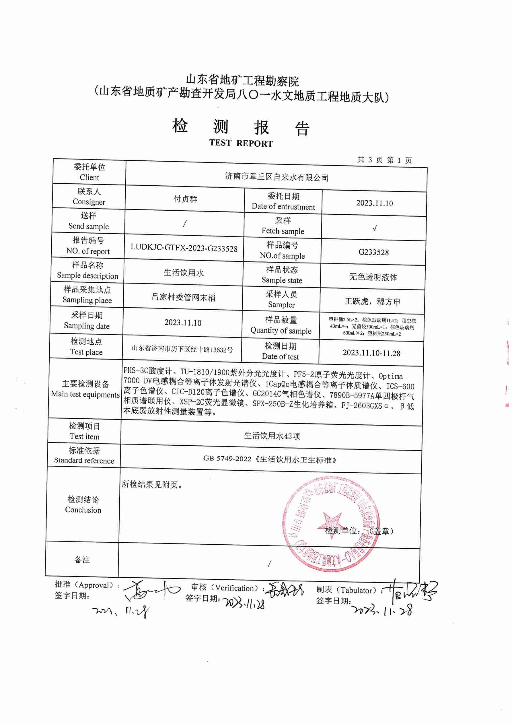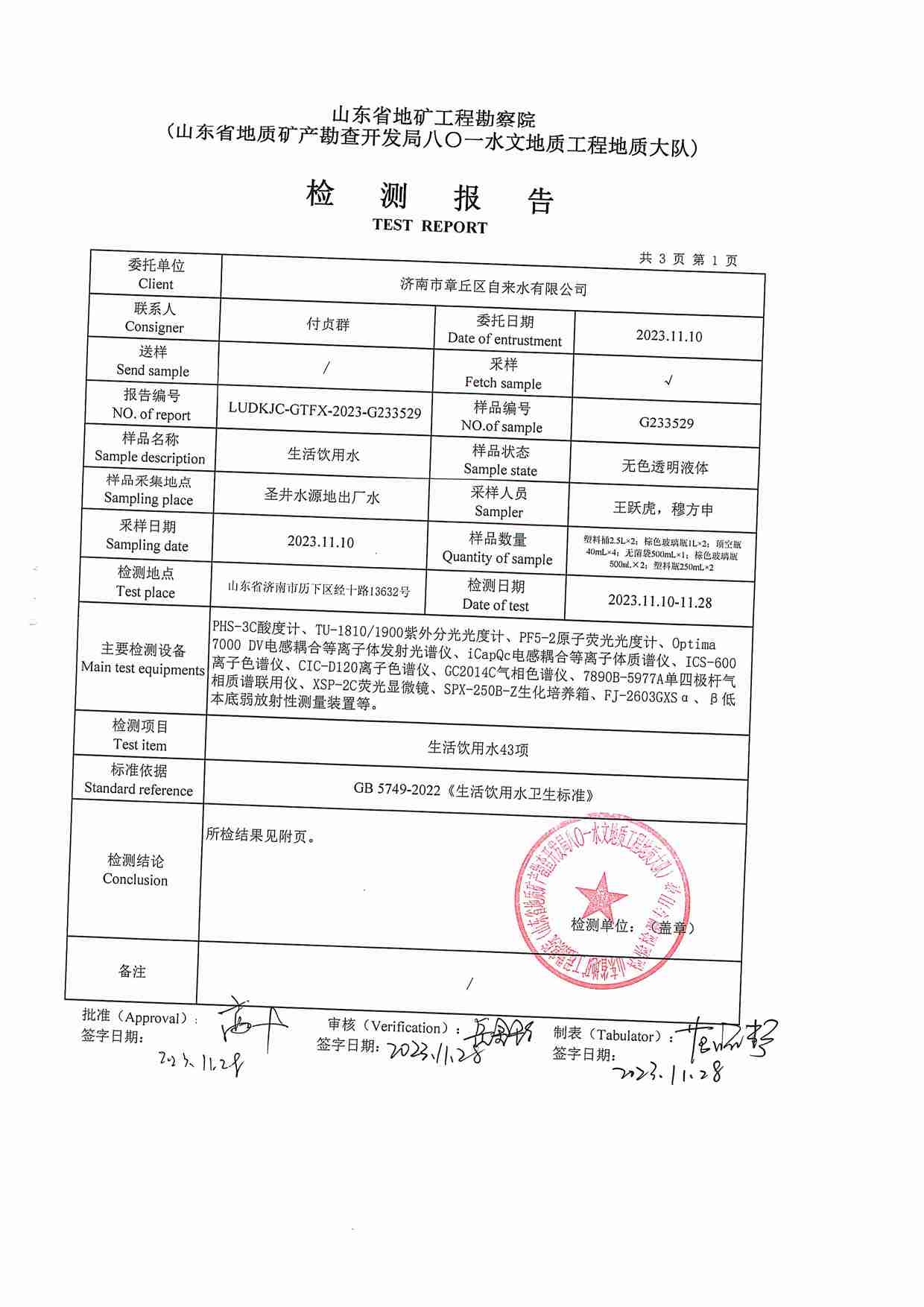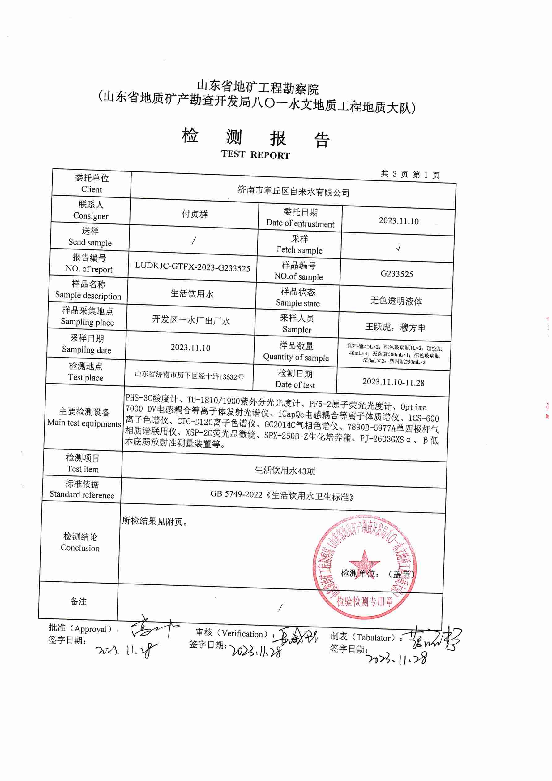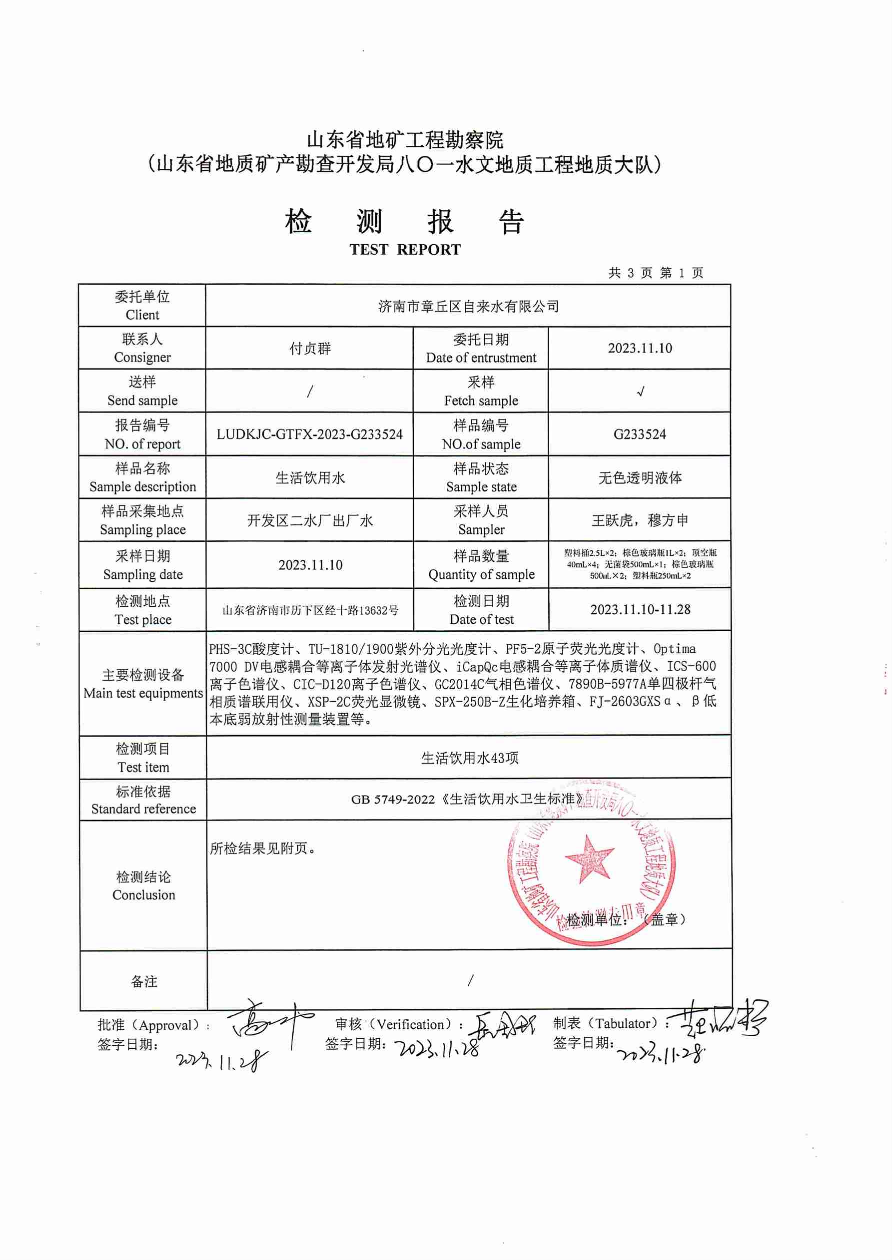 2023年11月水質報告