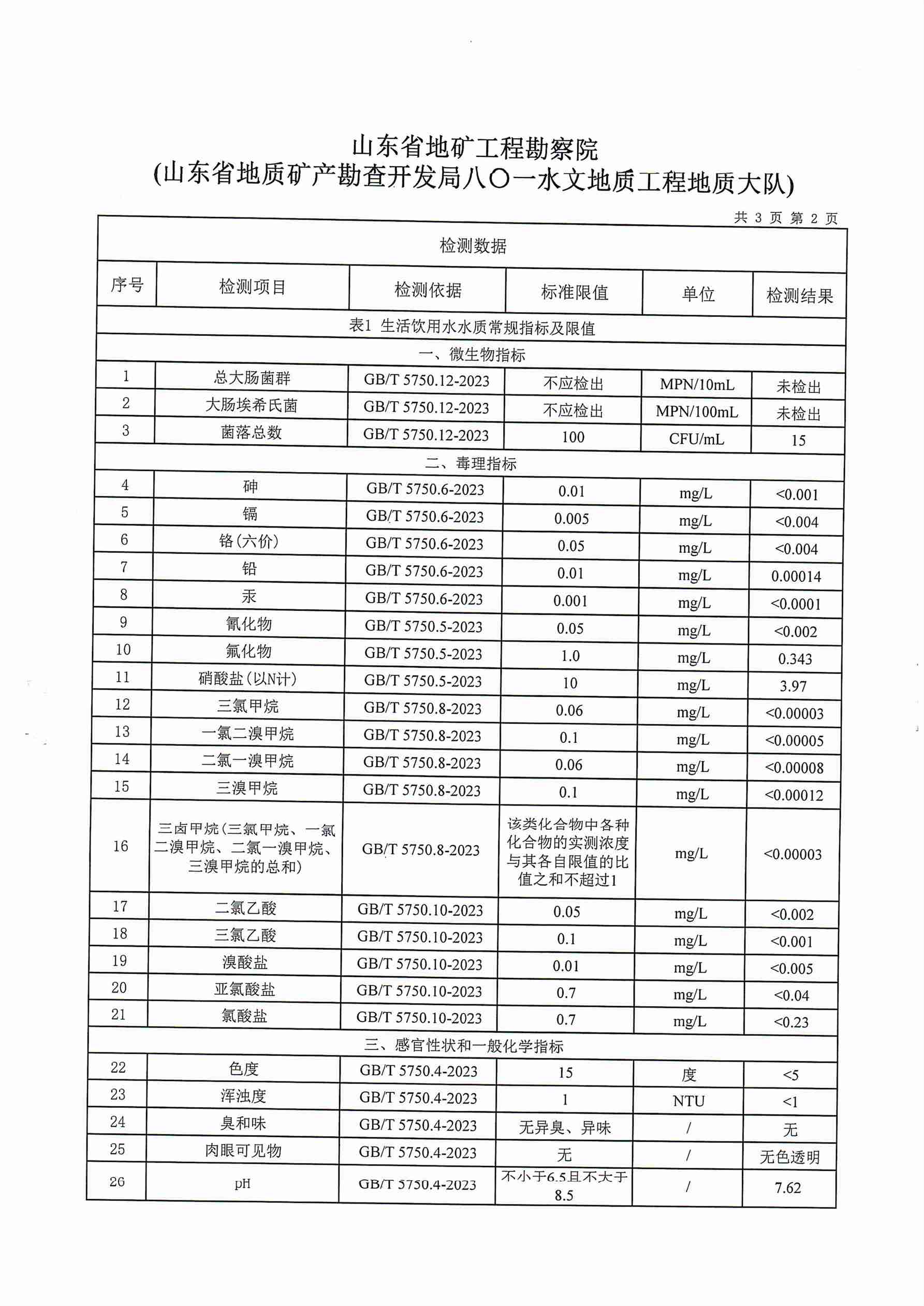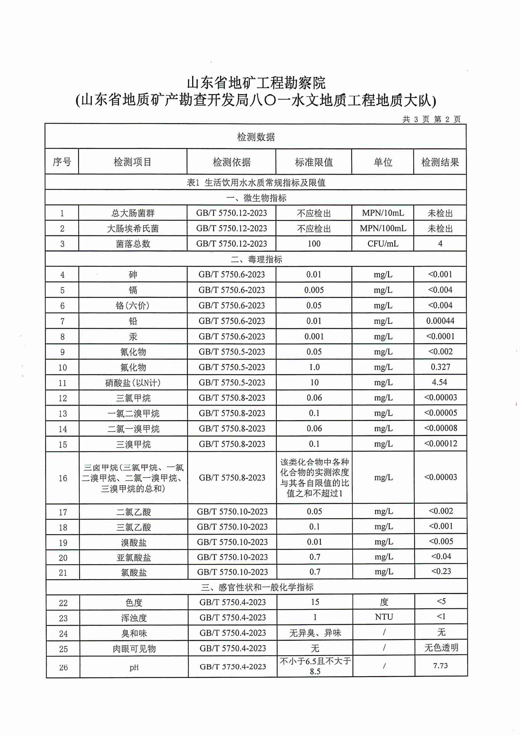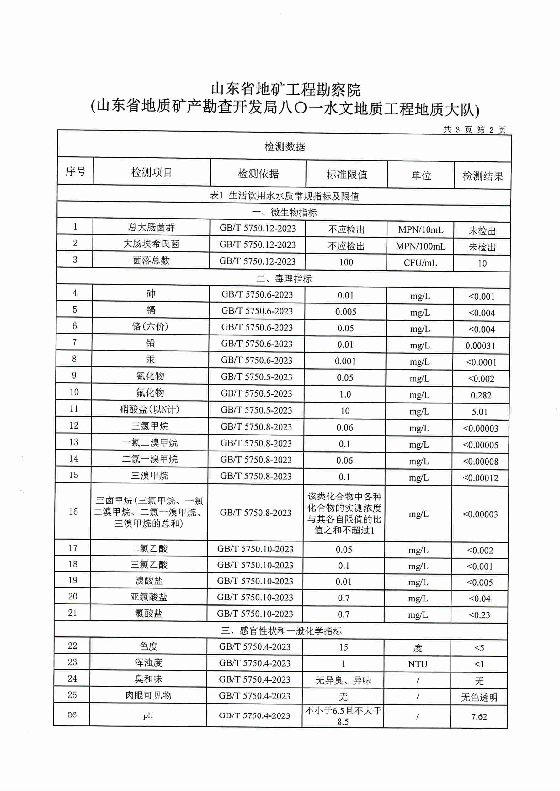 2023年10月水質報告