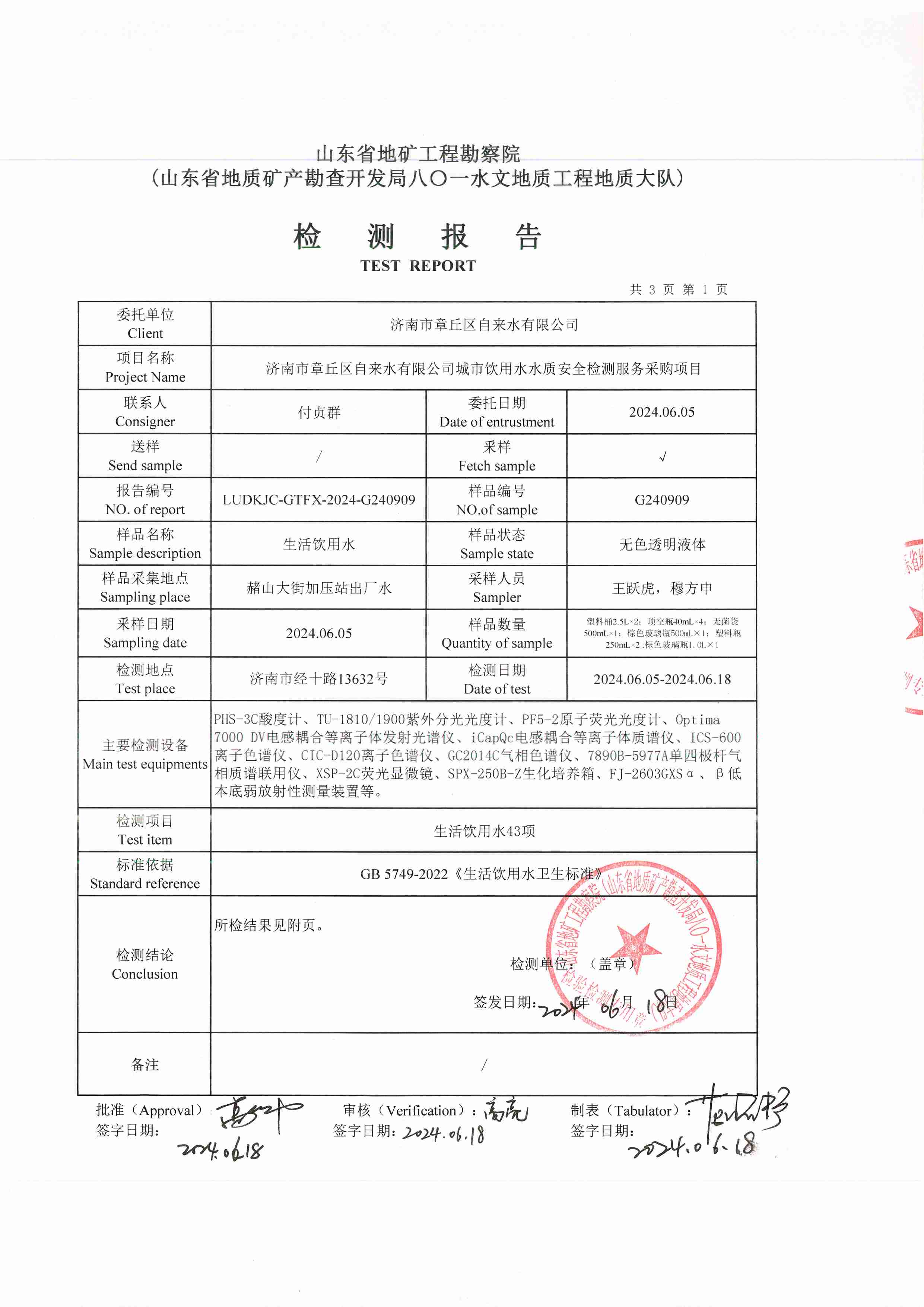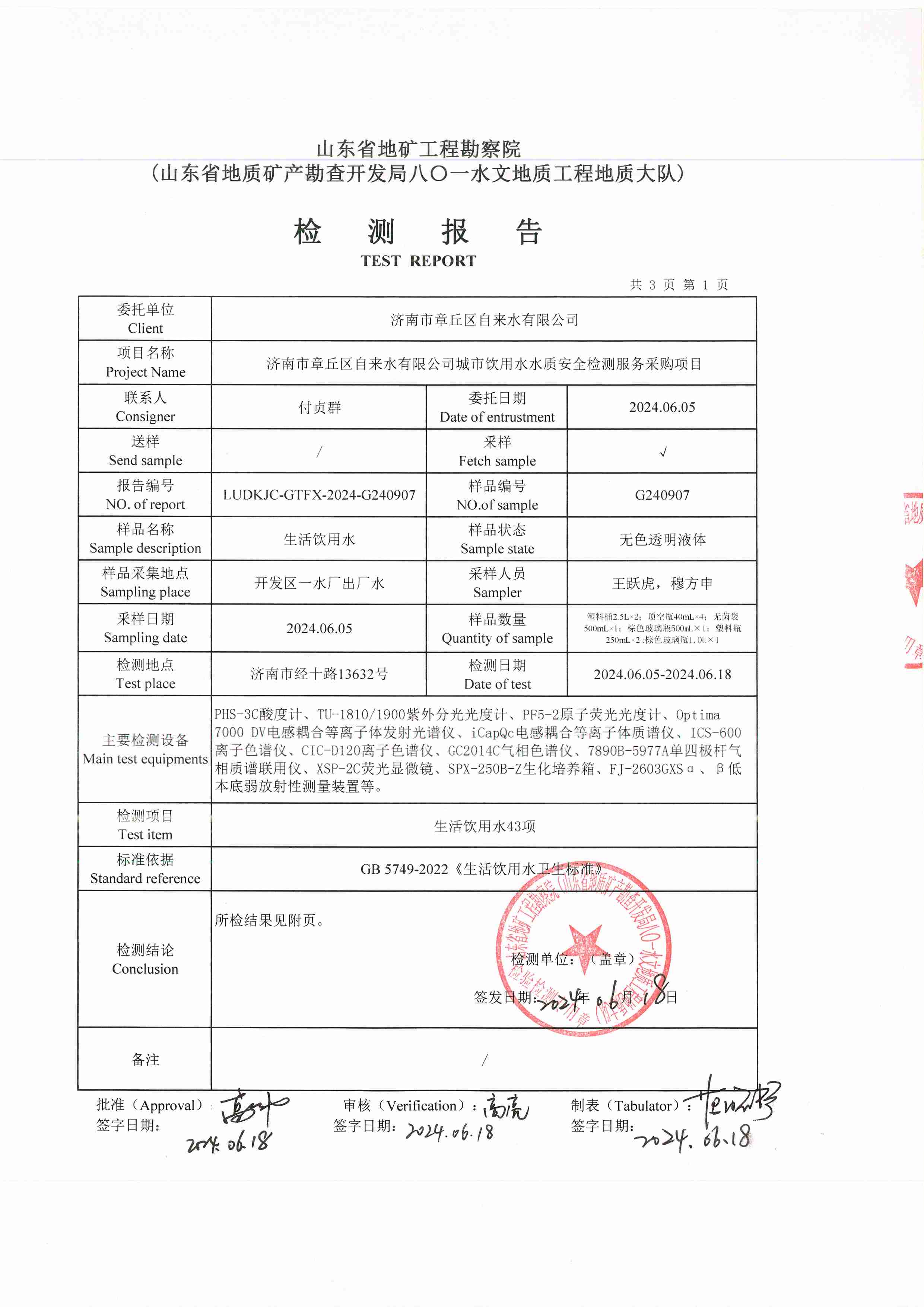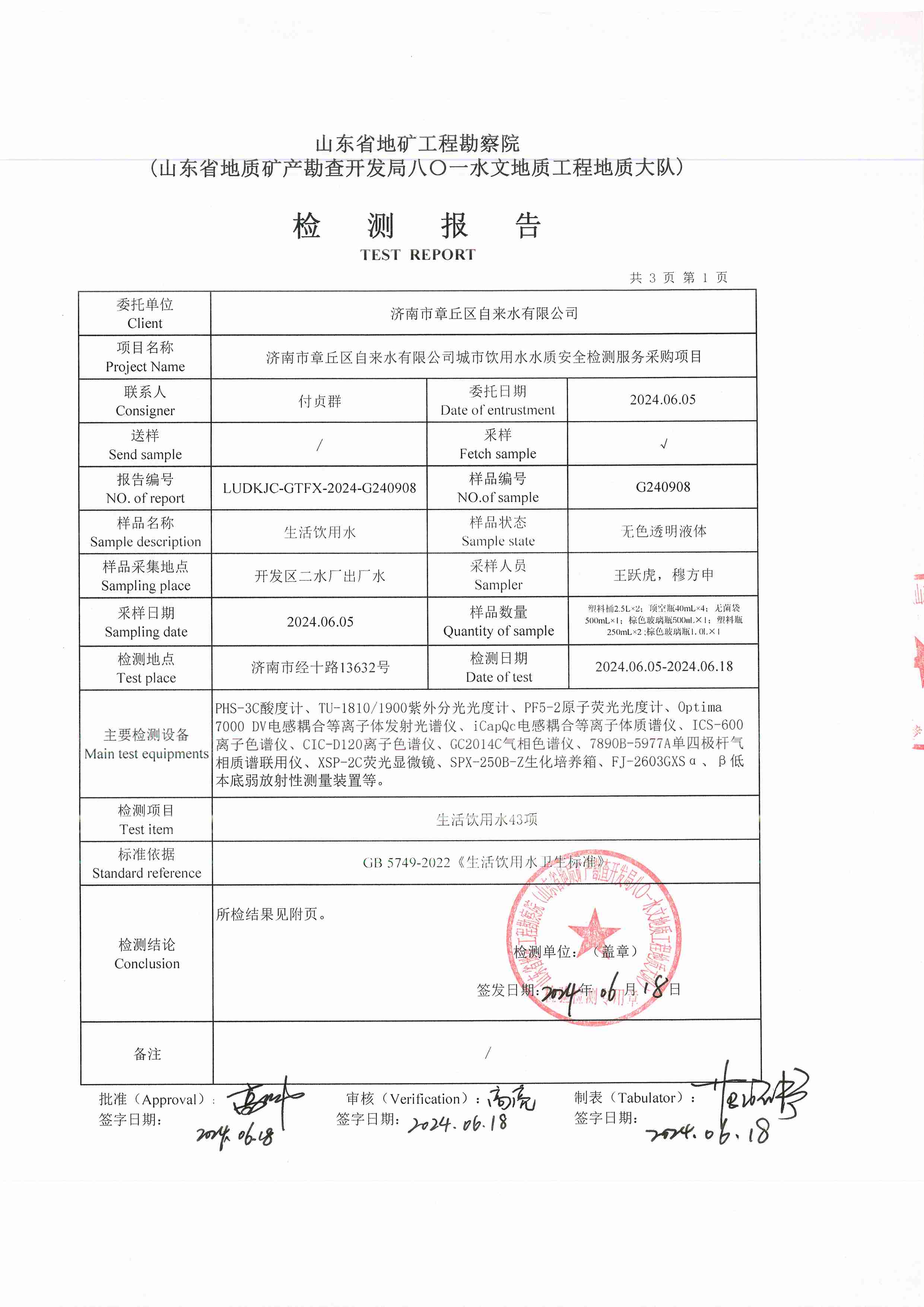 2024年06月水質(zhì)報(bào)告