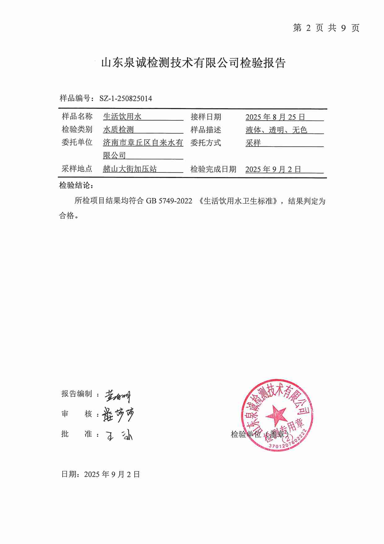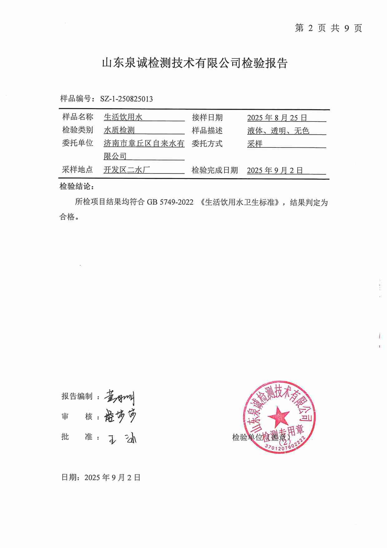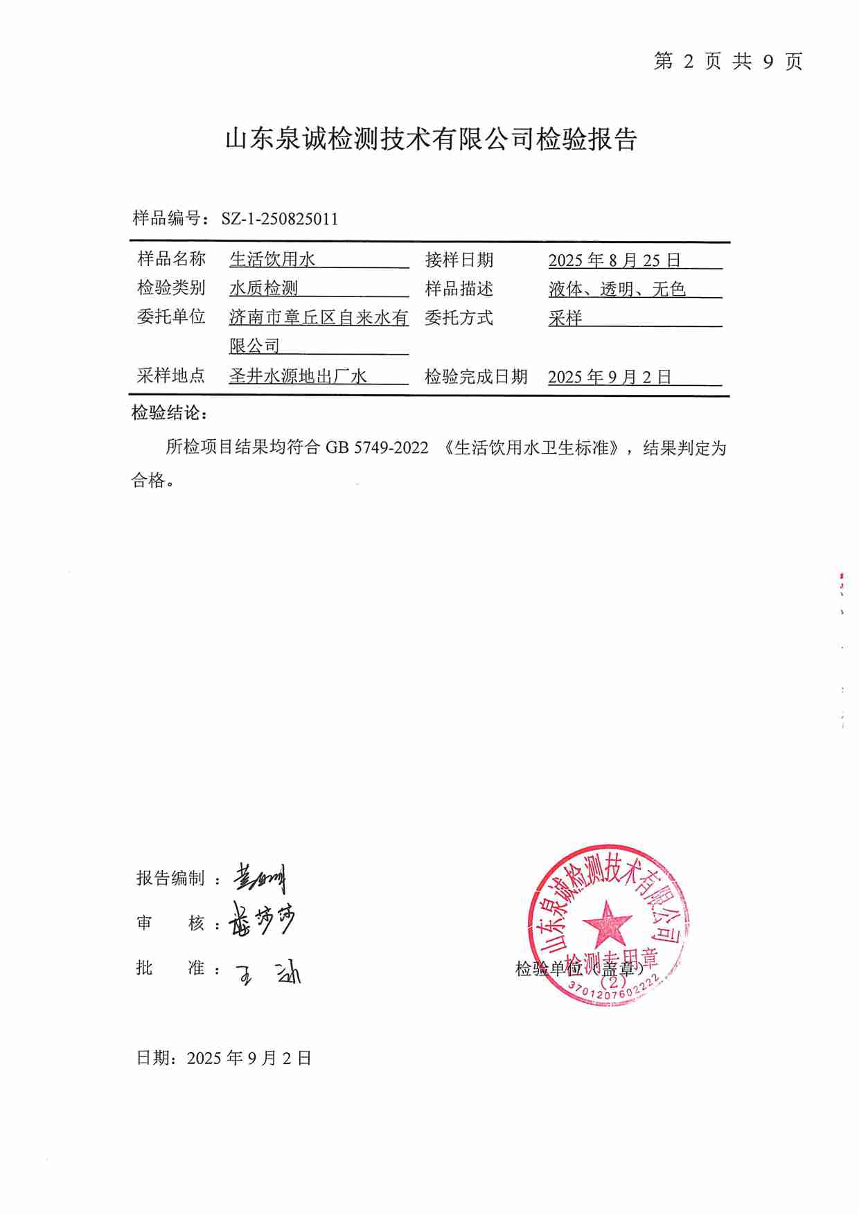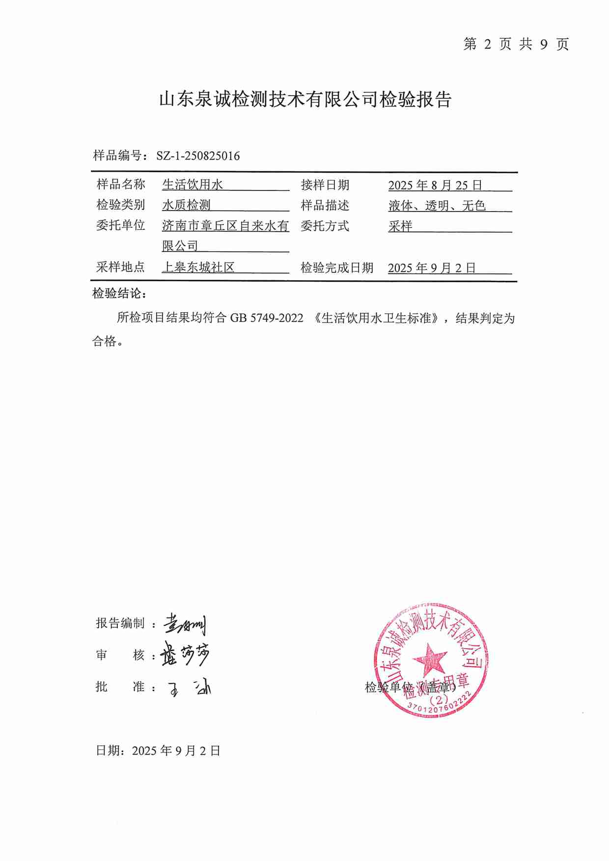 2025年09月水質報告