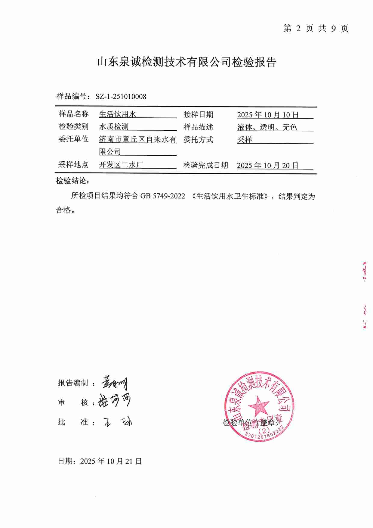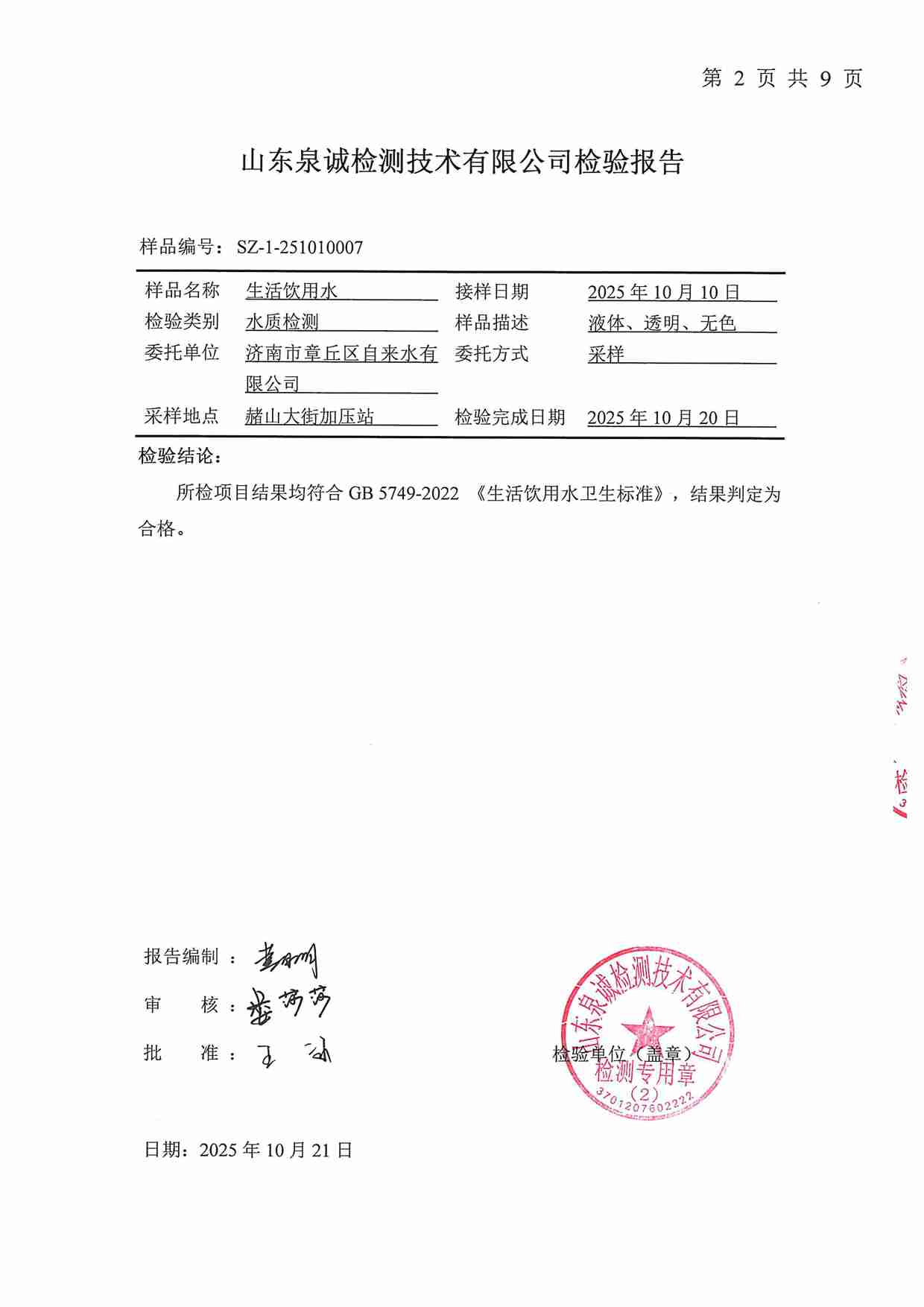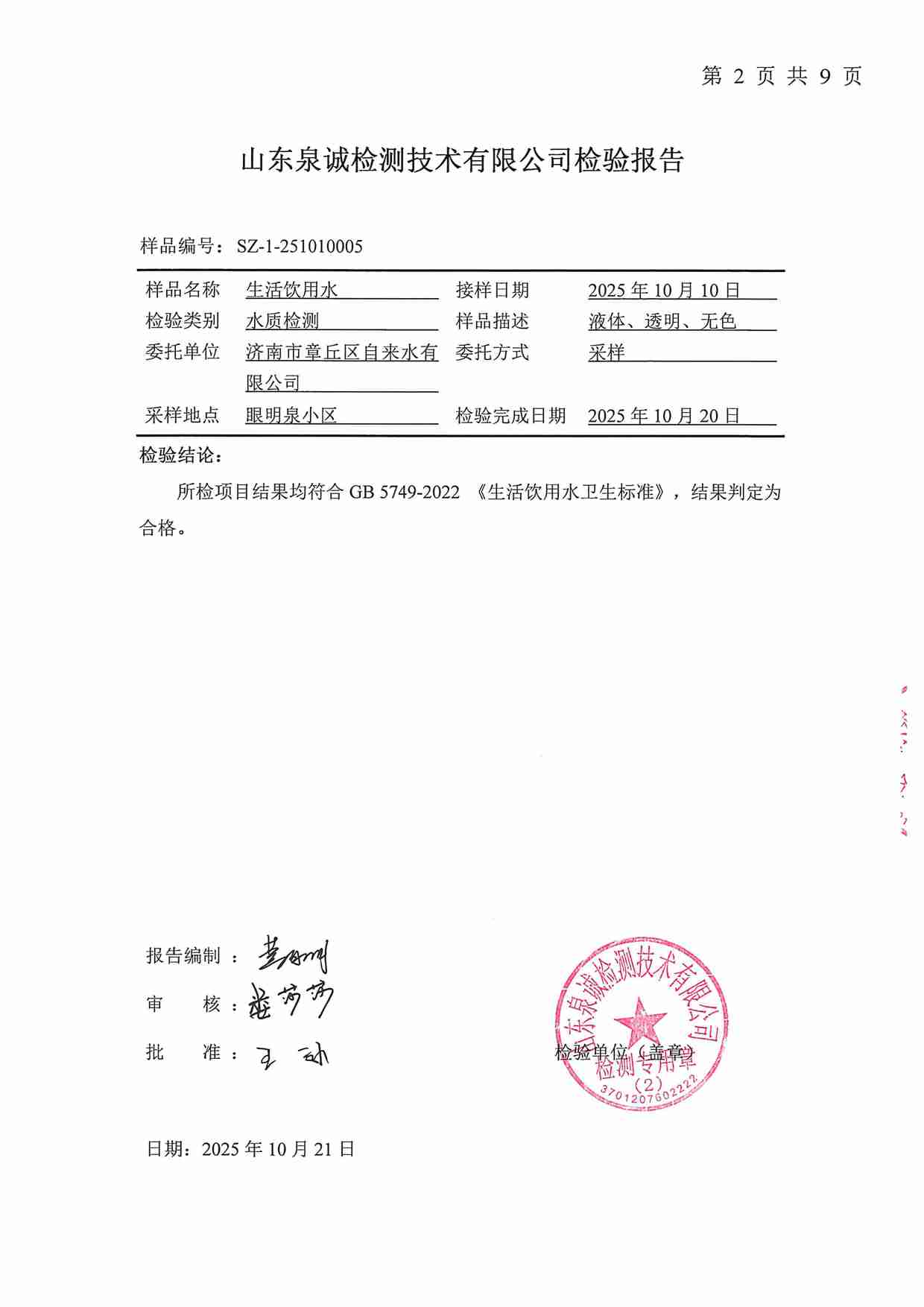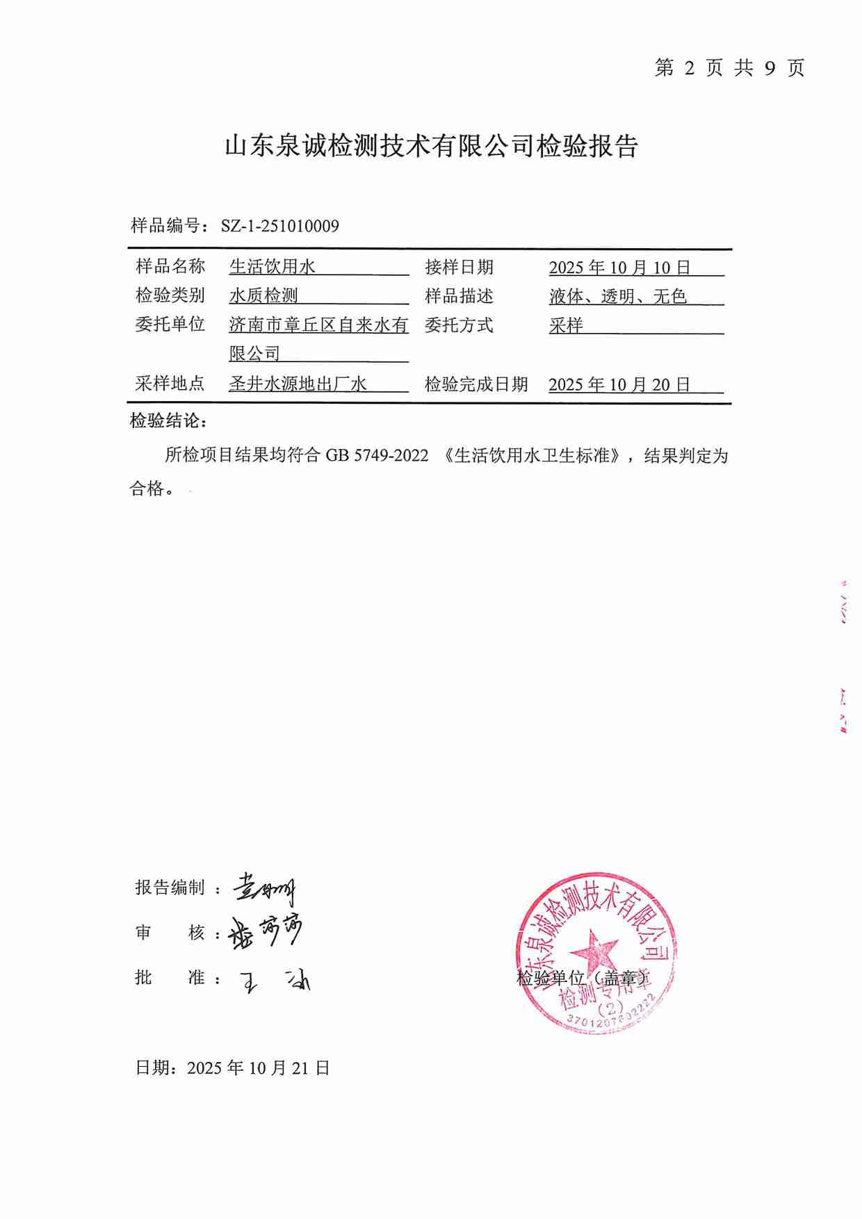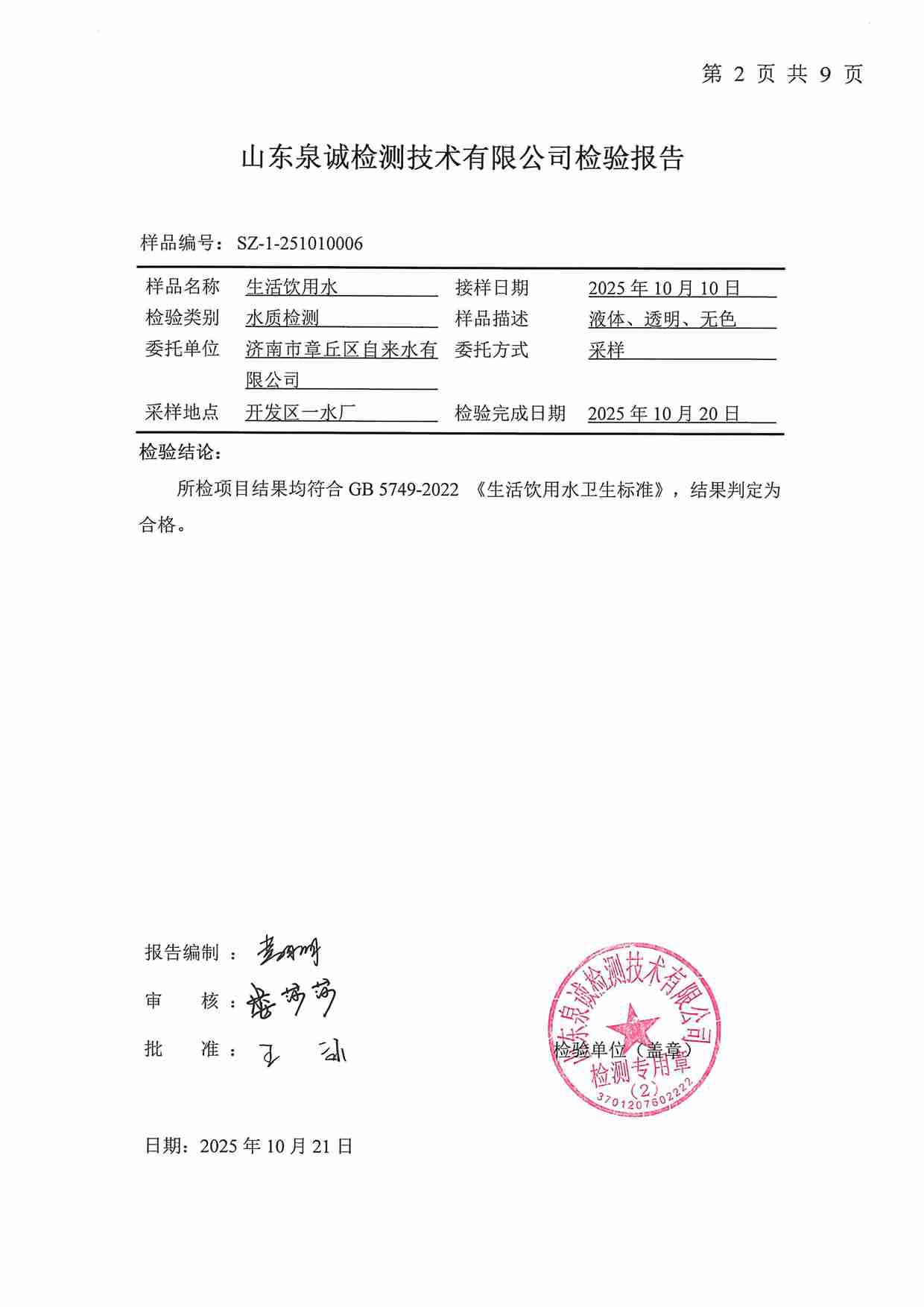 2025年10月水質報告